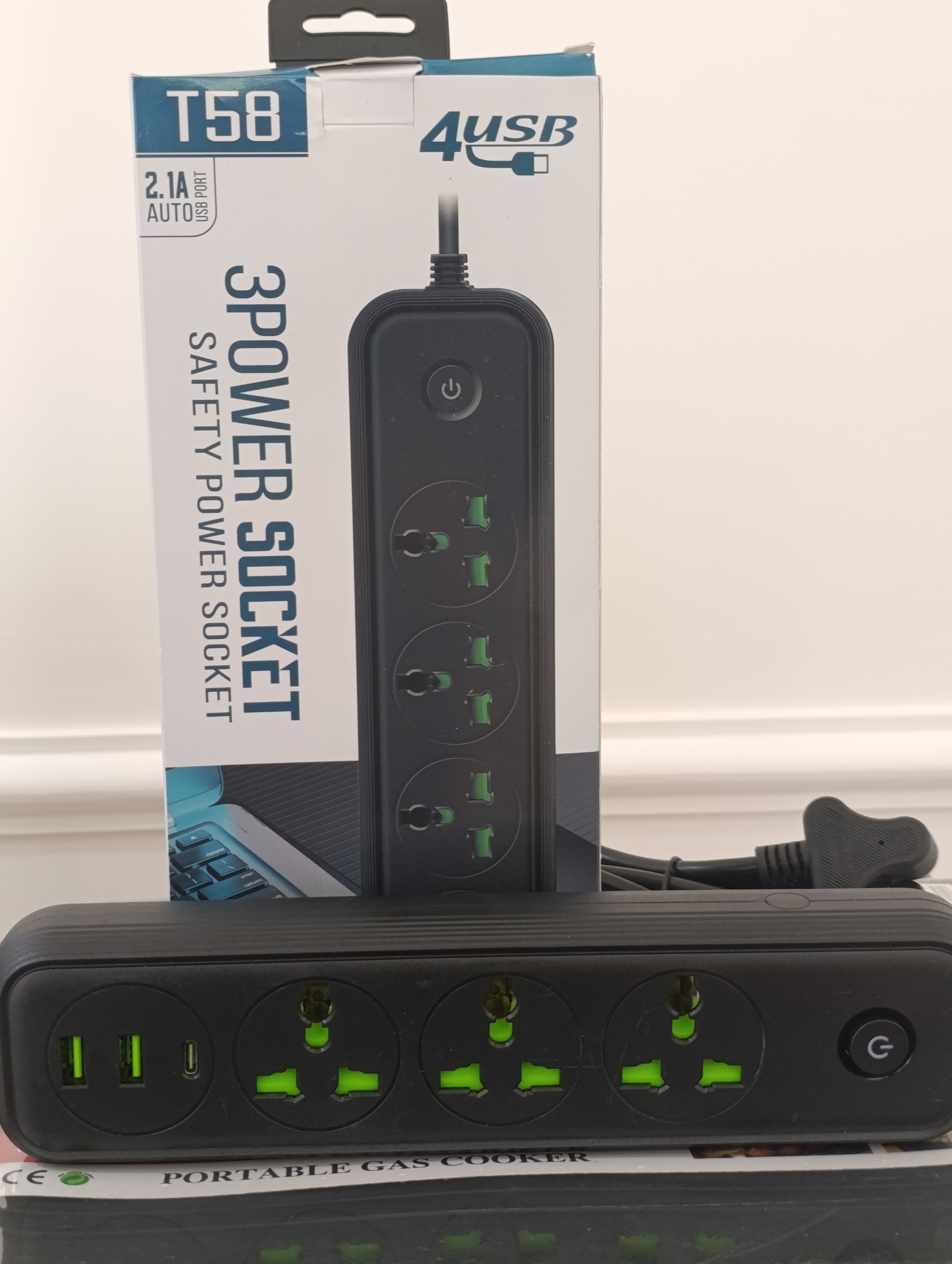 سیار برق USB دار 3 خانه پاور سوکت 2500 وات T58,