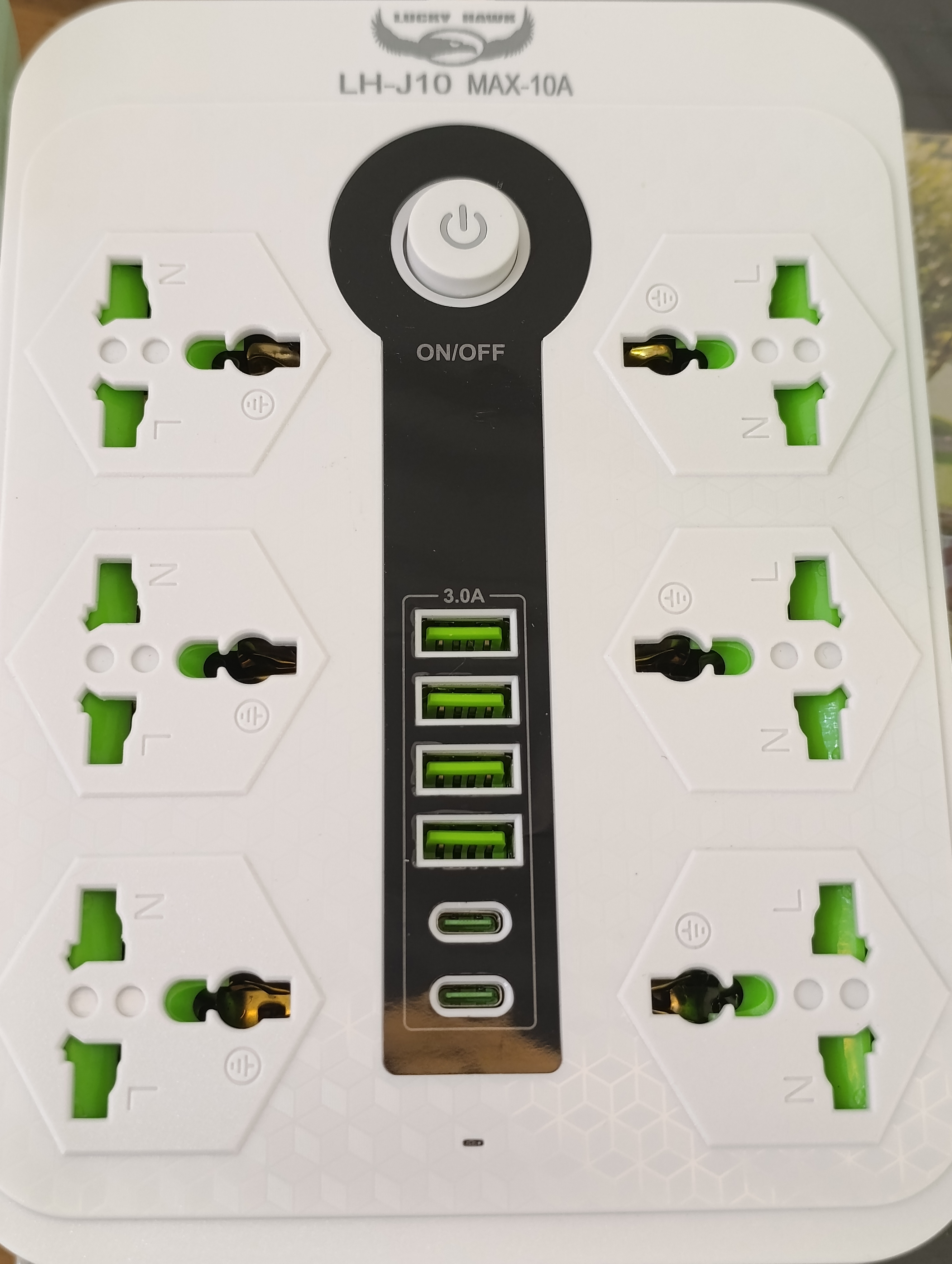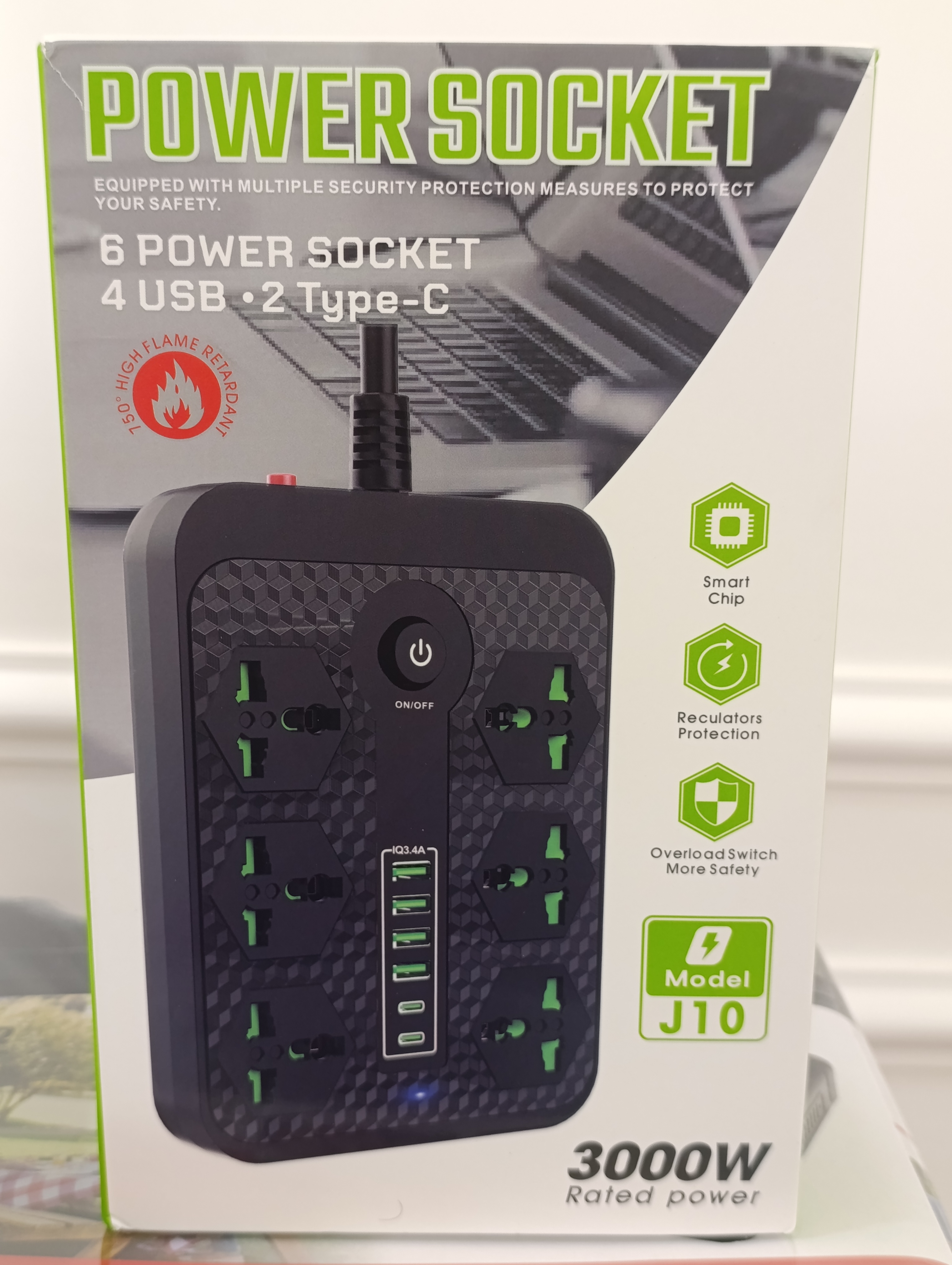 سه راه برق USB دار ٦ خانه ٣٠٠٠ وات پاور سوکت مدل J10