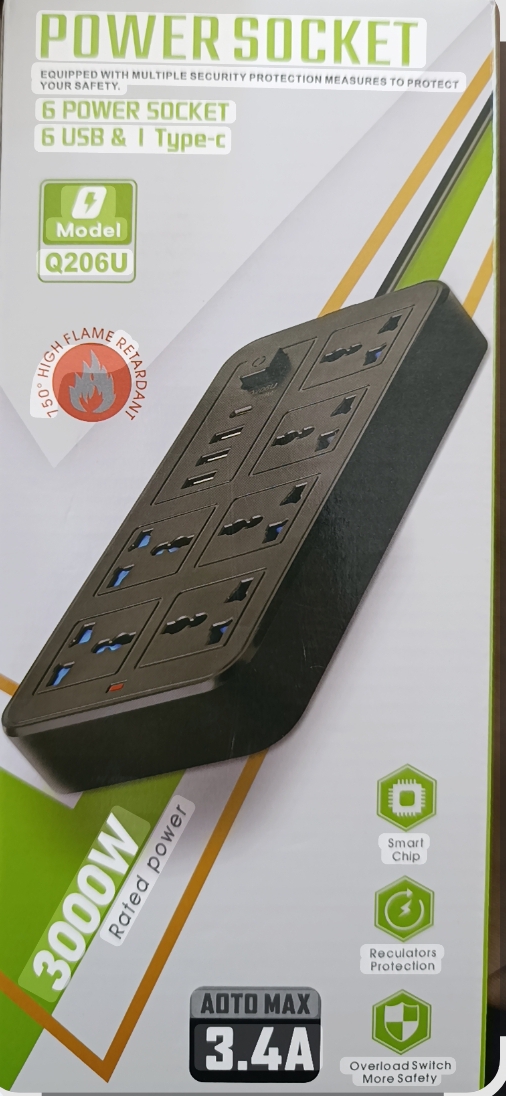 سیار برق USB دار ٦ خانه 3000 وات پاور سوکت مدل Q206U