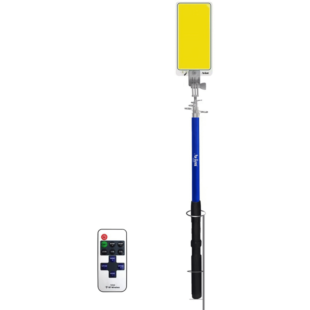 روشنایی قوی با توان 42 وات و شدت نور 4598 لومن دارای ریموت کنترل با برد بیش از 15 متر سه حالت نوردهی 100%، 50% و 25% پایه تلسکوپی قابل تنظیم تا ارتفاع 4.5 متر