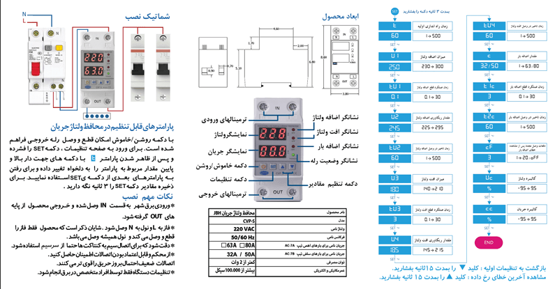 محافظ مرکزی ولتاژ جریان ٦٣ آمپر JBH